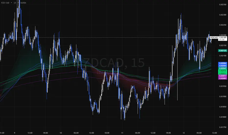 These zones act as dynamic support and resistance areas and help identify expansion or contraction phases in broader market structure.
