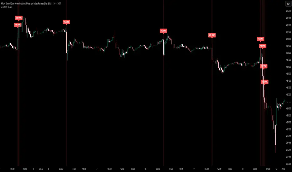 Volatility Spike Alerts can be configured to alert on a manually set multiple of volatility or dynamically. Volatility is calculated off a customizable True Range and alerts upon bar close.