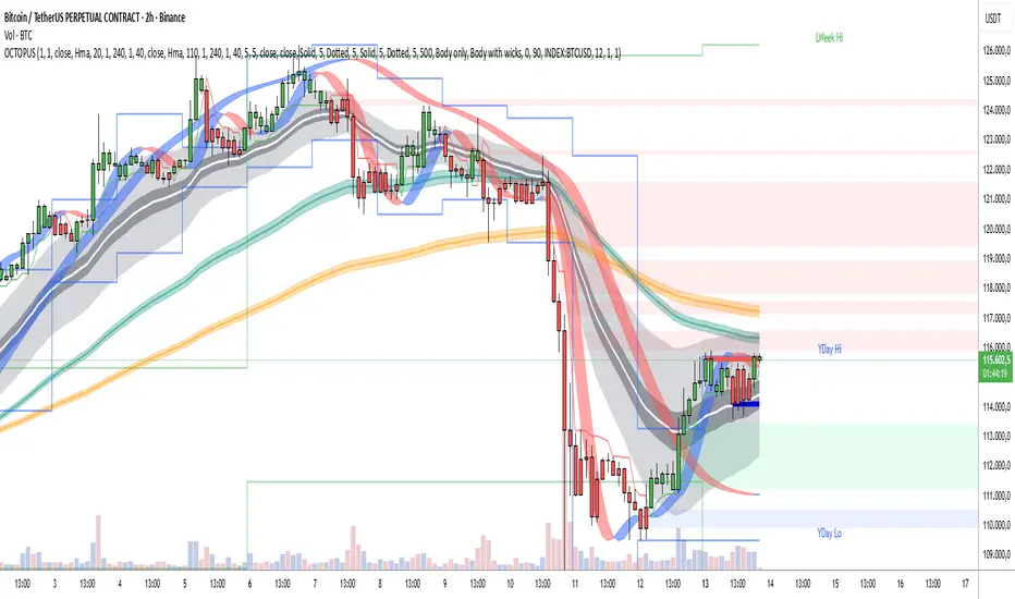 The Octopus Indicator is a comprehensive TradingView technical analysis tool that combines multiple trading methodologies into a single, powerful script. It provides a complete market analysis framework through seven integrated components.