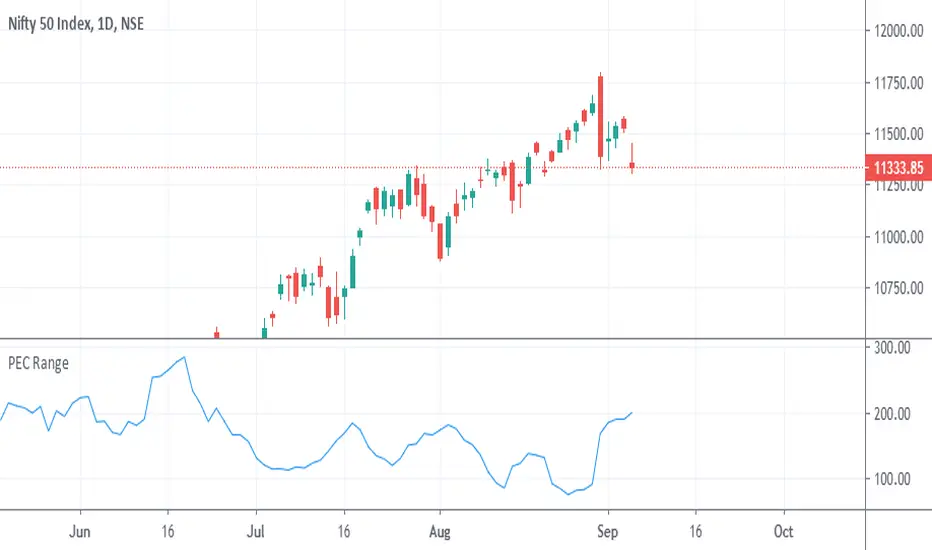 Price Expansion and Contraction is basic calculation of Candles High-Low and it is average of previous 5 High-Low. Which will help to analyse volatility of running situation. This can be used for analysis purpose only not as buy/sell signals.