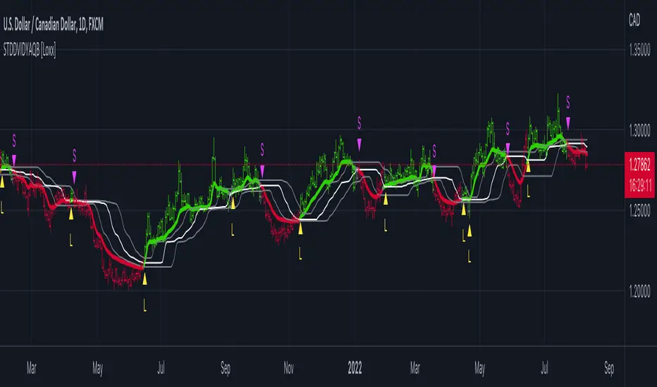 STD-Stepped VIDYA w/ Quantile Bands [Loxx] is a VIDYA moving average with Standard Deviation step filtering on either/neither/both price and VIDYA. Also included are quantile bands to identify breakouts/breakdowns/reversals.