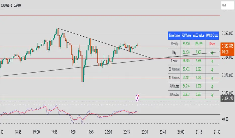 RSI values for Weekly, Daily, 1H, 30M, 15M, 5M, and 3M