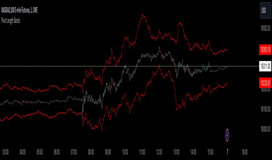 The Pivot Length Bands indicator is designed to visualize price volatility based on pivot points and ATR-adjusted pivot points. I. These bands can help traders identify potential support and resistance levels and assess the current volatility of the market.