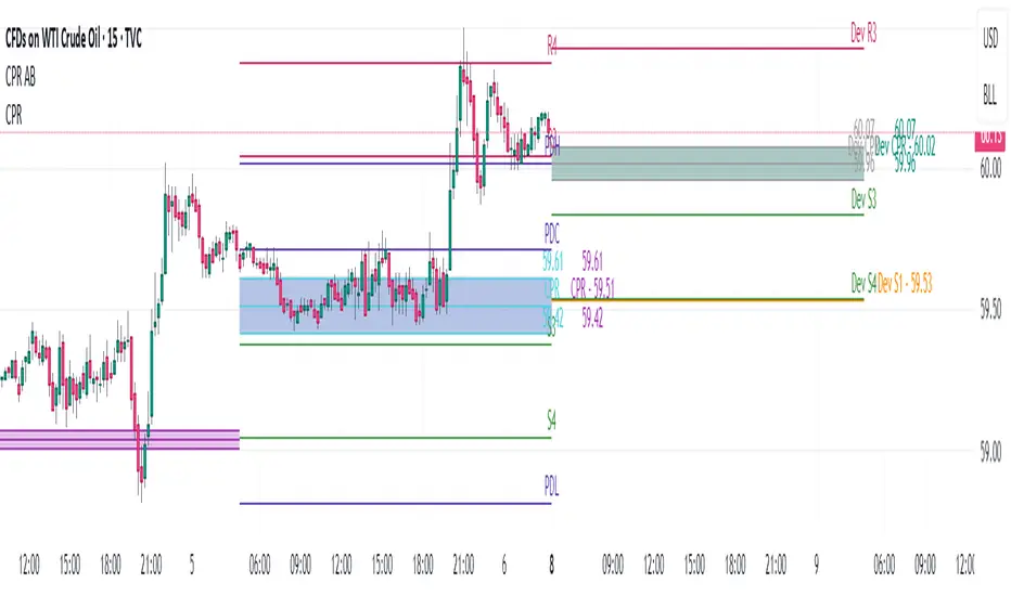 1. CPR with traditional support and resistance levels (S1-S4 & R1-R4).