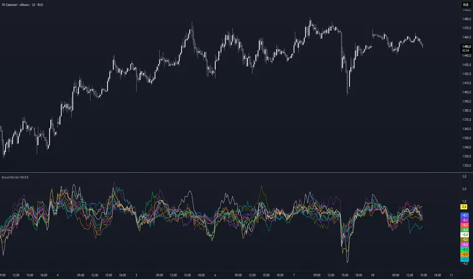 This indicator is particularly useful for traders in the Russian stock market who want to gauge broader market strength and detect divergence patterns across multiple assets.