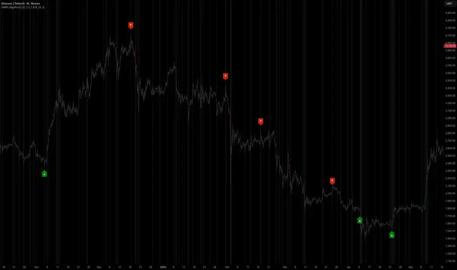 The EMMS indicator is a specialized tool designed to detect these specific moments of potential market manipulation. It does not follow trends in a traditional sense; instead, it identifies high-probability reversal points created by the calculated actions of Smart Money trapping other market participants.