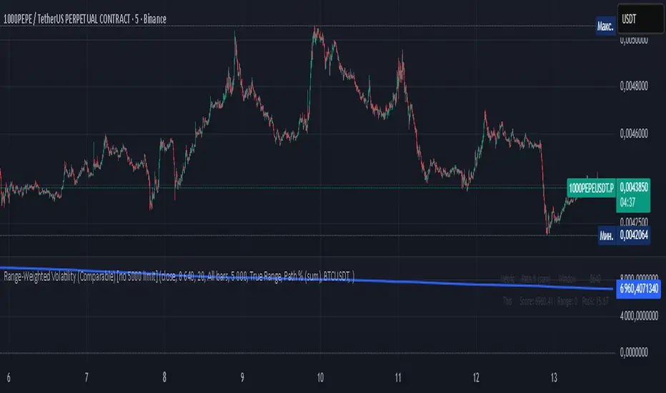 I wrote an indicator to measure volatility inside a range. It’s extremely useful for choosing a trading pair for grid strategies, because it lets you quickly, easily, and fairly identify which asset is the volatility leader. It measures volatility “fairly” relative to the asset’s trading range, not just by absolute price changes.