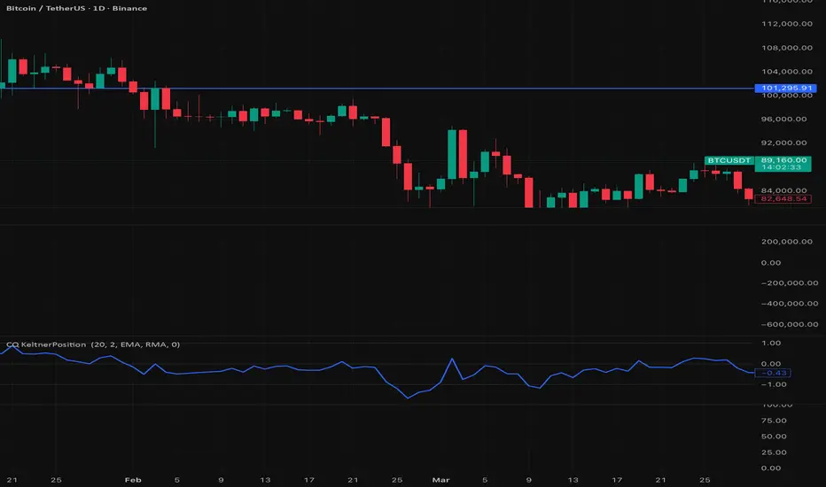 This indicator shows where price is positioned inside a Keltner Channel using a normalized scale.