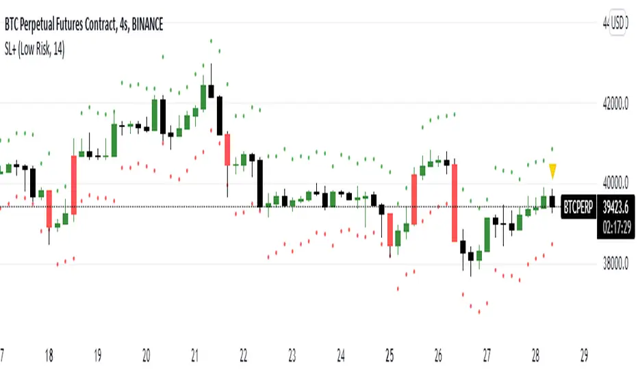 That indicator helps us to determine the stop loss levels or prices in terms of atr levels. It includes 4 (four) options which are 1-Don't Risk, 2-Low Risk, 3-High Risk, 4-Risk Lover their exploding rates are 1-2.4% , 2-3.9% , 3-6.7% , 4-16.7% in sort. It helps us to produce new methods to decreace our risk/reward ratio. It is ATR Trailing StopLoss indicator. The indicator is awesome in terms of comfortable. Thanks and waiting for your feedbacks.