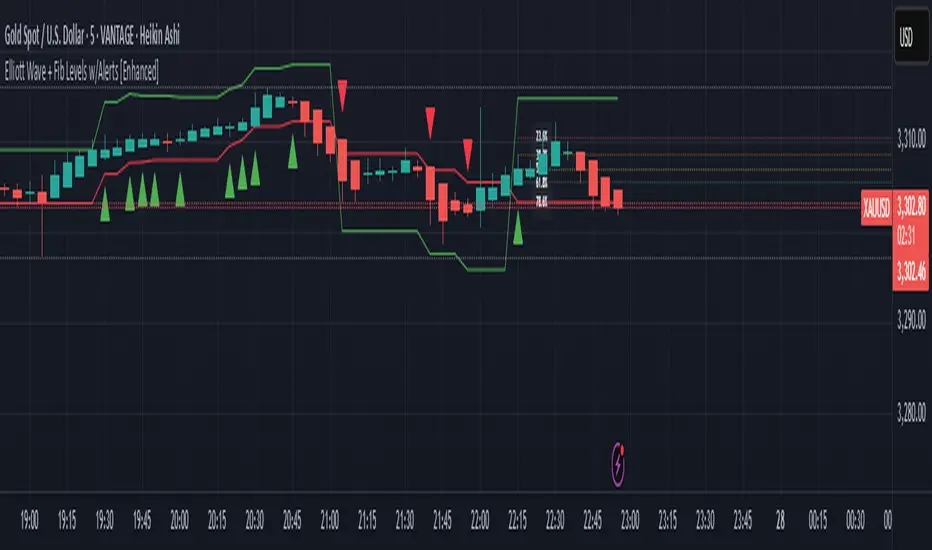 Elliott Wave + Fibonacci Levels with Alerts [Enhanced]