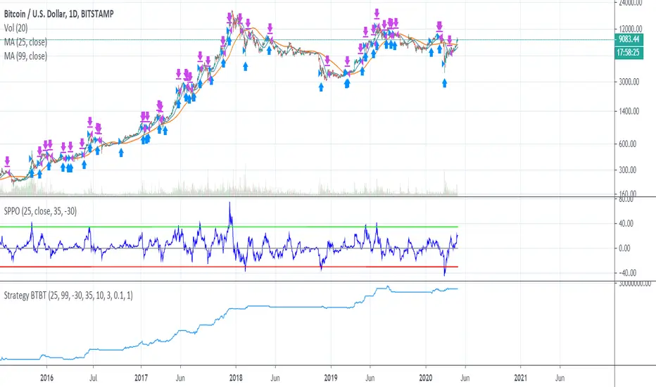 To determine overbought (pump) and oversold (dump), the strategy uses the oscillator "SPPO".