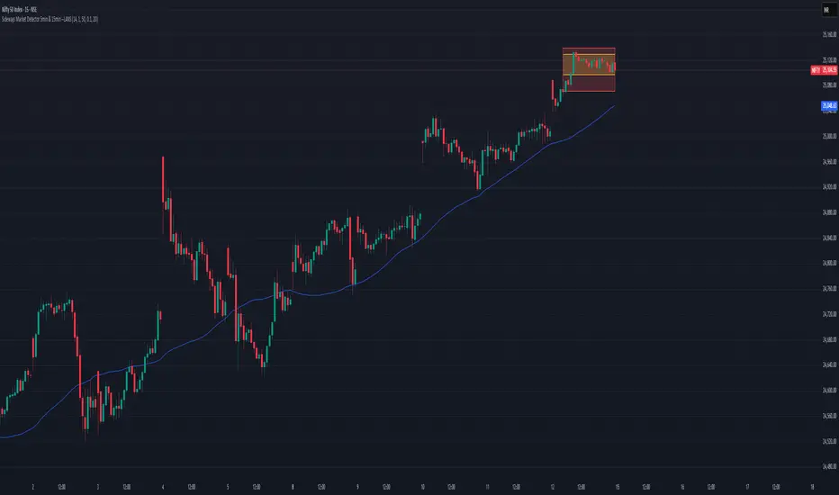 This indicator is designed to detect sideways (range-bound) market conditions across two key intraday timeframes — 5-minute and 15-minute charts — and visually highlight them for better decision-making.