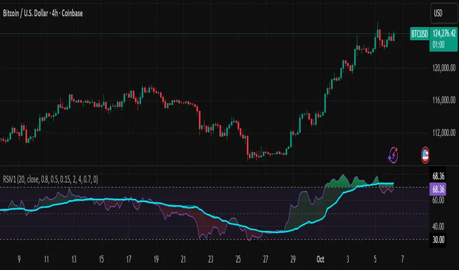 Instead of smoothing RSI with a plain MA, you can use VWAP computed on RSI. That brings participation (volume) into the picture, which often reads momentum quality better—especially in crypto or during news hours.
