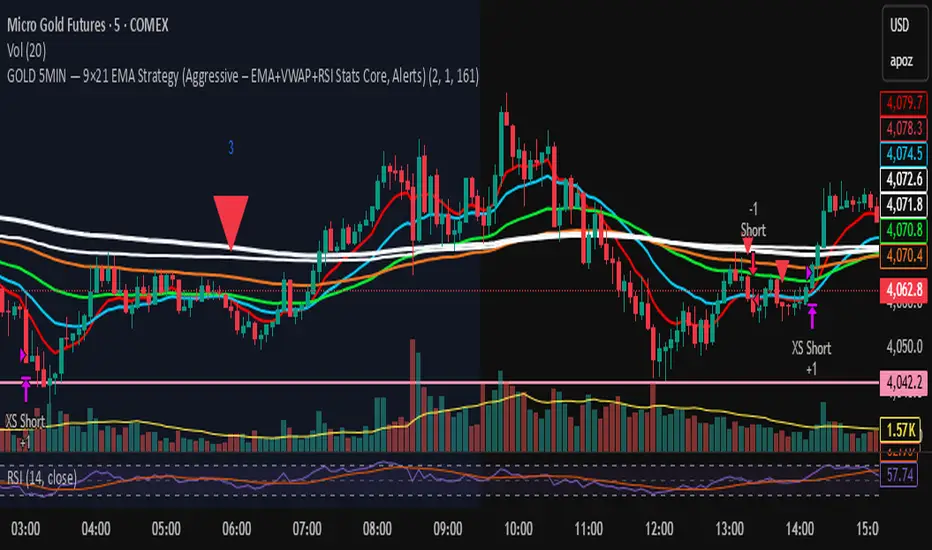GOLD 5MIN — 9×21 EMA Strategy (Aggressive)