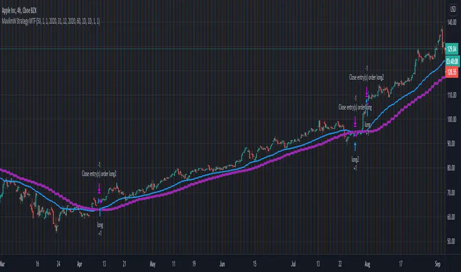 This is a strategy adapted initially for Mavilim moving average indicator, based on WMA MA.