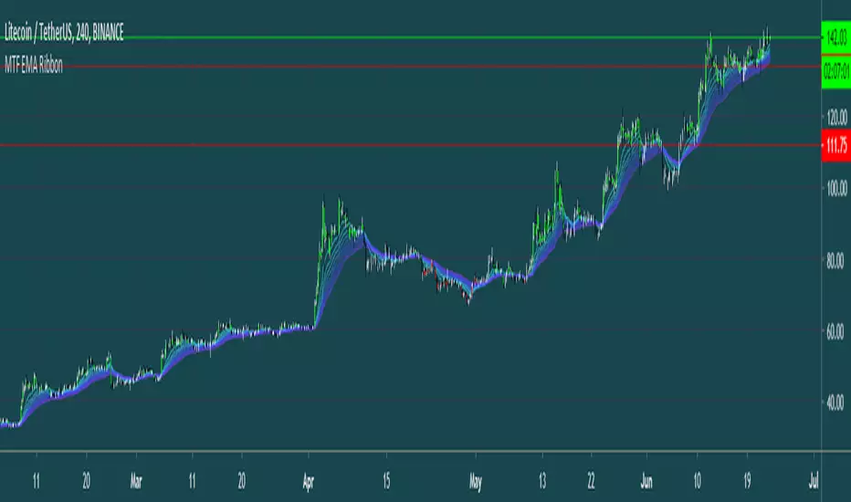 This Script analyses trends using an EMA Ribbon (Can be adjusted to any timeframe).
