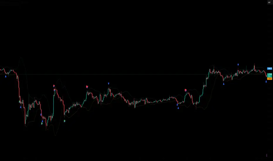 Feature Highlights ◾ Smart Band Display Translucent bands (#2196F3 & #FF9800 with 70% transparency) maintain chart clarity while showing dynamic volatility ranges