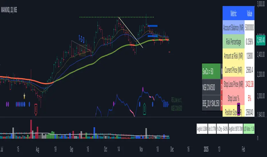 The Position Size Calculator script helps traders determine the optimal position size for their trades based on their account balance, risk percentage, and stop loss parameters. It calculates the number of shares to buy and the total position size in INR (Indian Rupees), providing a clear and concise way to manage risk effectively.