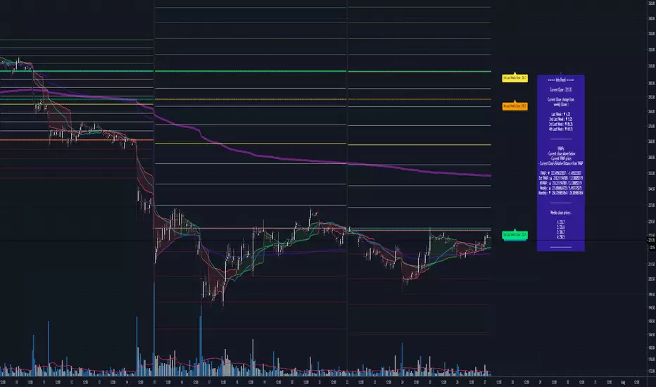 To use on lower timeframes such as 3m, first go to a higher TF (15m, 1h, etc) and copy down the weekly close prices listed in the info panel.