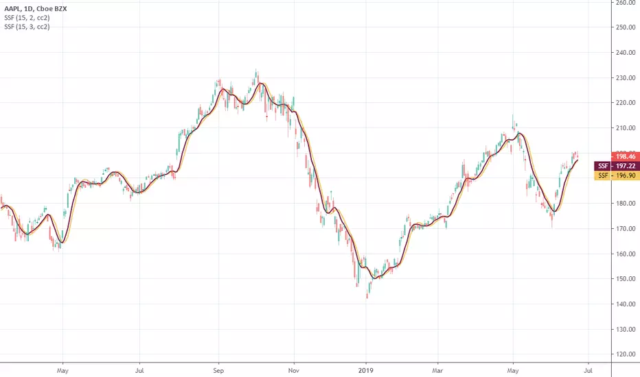 This indicator was originally developed by John F. Ehlers (see his book `Cybernetic Analysis for Stocks and Futures`, Chapter 13: `Super Smoothers`).