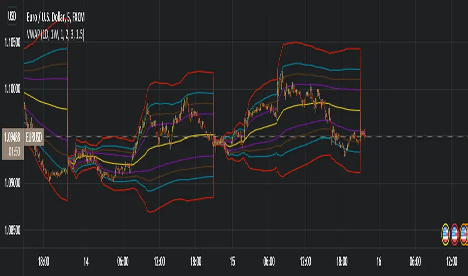 A stripped down and modified version of the 'VWAP with Standard Deviation Bands' indicator by pmk07. The bands have been modified and styled to match those used on the Tradovate platform by Matt from the Trades By Matt youtube channel so if you would like to know how they should be used go to his youtube channel and watch his strategy explanation video.