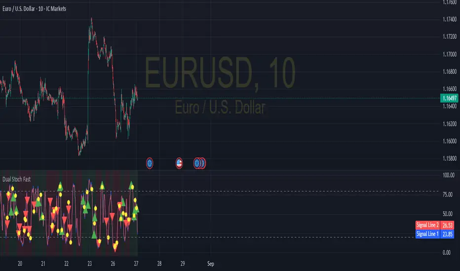 If you turn off the "Use Trend Filter" option, the indicator will function as a simple dual stochastic crossover system.