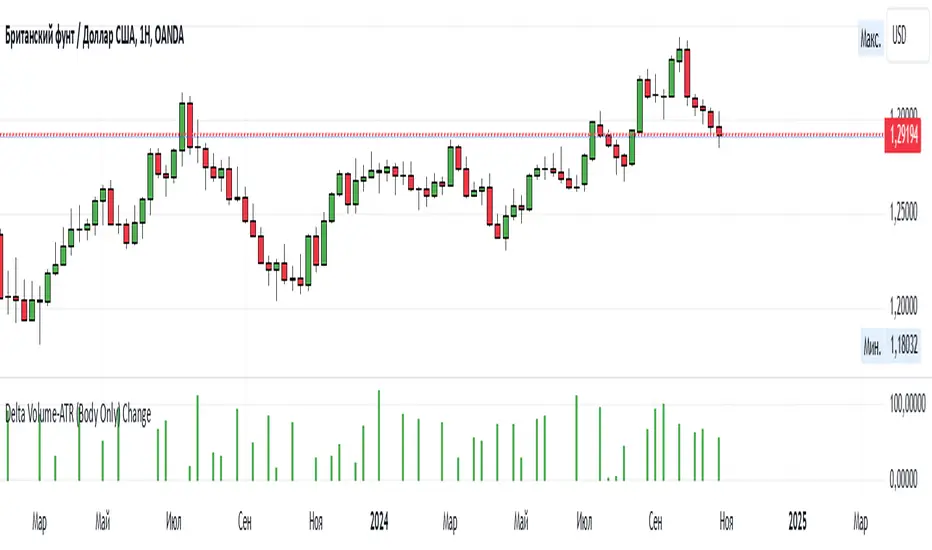 Delta Calculation: The delta is derived from the difference between the percentage change in volume and the percentage change in the candle body (modified ATR). This delta helps to analyze market activity and volume effectiveness.