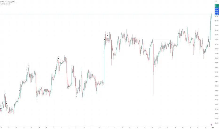 The "Engulfings/Doji" indicator, is designed to assist traders in identifying significant candlestick patterns on price charts. This indicator focuses on two primary candlestick patterns: Bullish Engulfing and Bearish Engulfing, as well as the Doji pattern. It provides valuable insights into potential price reversals or continuations. Here's how it works and how to use it: