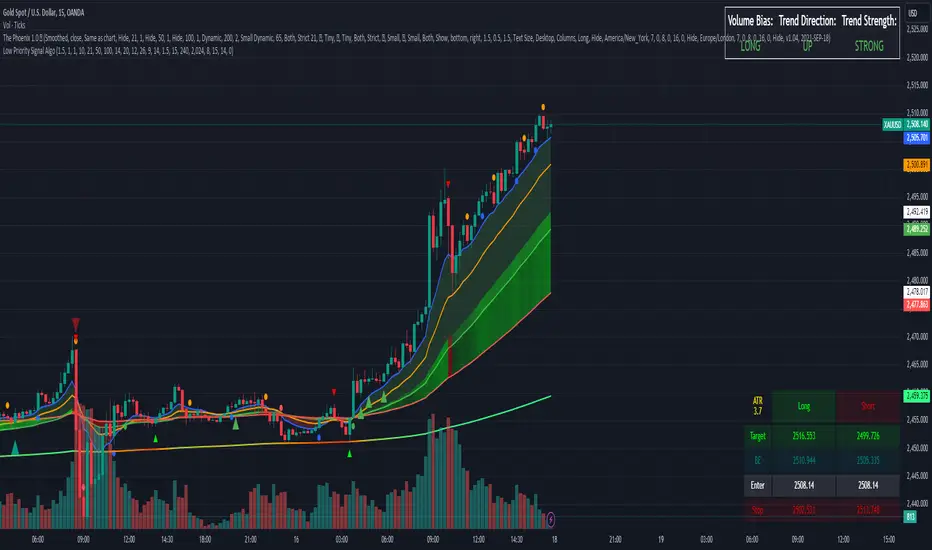 Table: Shows key information like volume bias, trend direction, and trend strength on the chart.