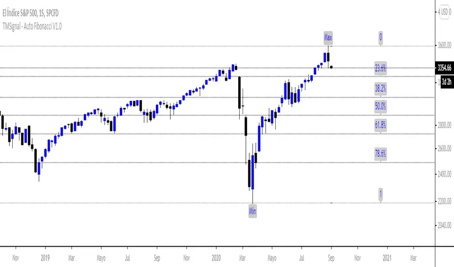 TMSignal Auto Fibonacci V1.0: Automatically calculates the Fibonacci Retracement + Extension of 161.8% in order to always have it plotted in a "millimeter" way.