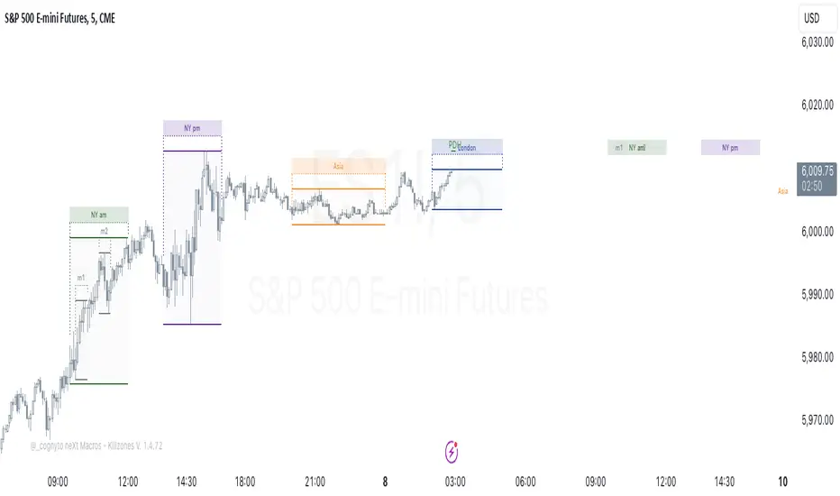A MACRO is a concept introduced by Micheal Huddleston, known as ICT, the -Inner Circle Trader- and he is the one to thank for. It represents some short periods of time during the day that can be used as an advantage for trading due to major economic events, or when the price reaches a certain level of relevance. The indicator is a tool that visually highlights these important periods in advance.