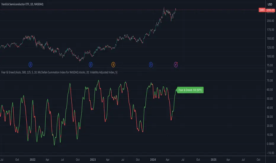 The Fear & Greed index (advanced) is a comprehensive and customizable technical analysis tool designed to gauge market sentiment and identify potential buying or selling opportunities. This advanced version of the Fear & Greed Index incorporates a wide range of market data and technical indicators, providing traders with a more nuanced and sector-specific view of market sentiment.