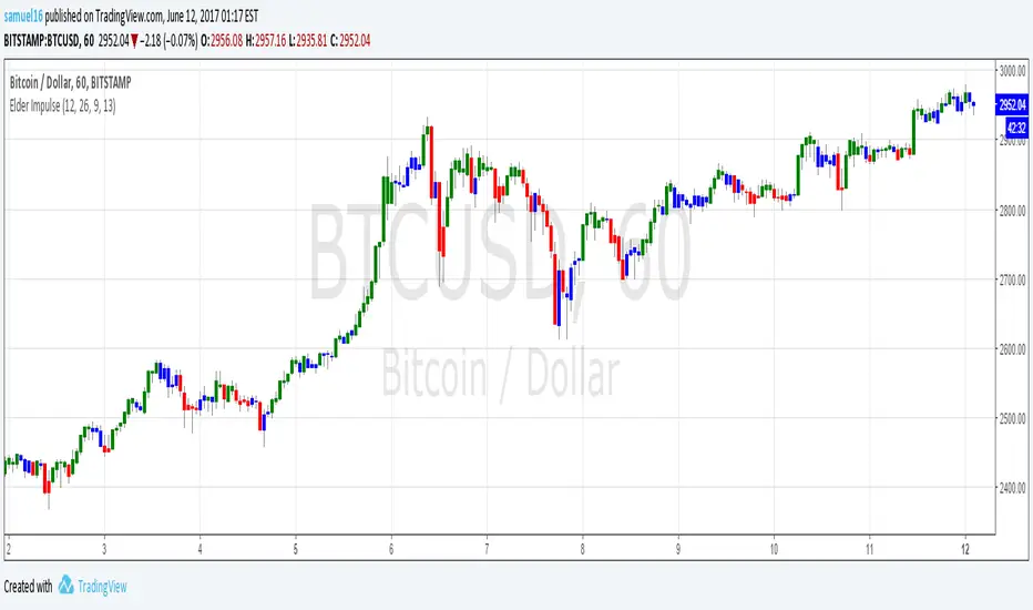 Pretty much the same as https://www.tradingview.com/script/oCbEFfpg-Indicator-Elder-Impulse-System/, but written from scratch to be simpler to use and the source code easier to read (no offense, LazyBear)