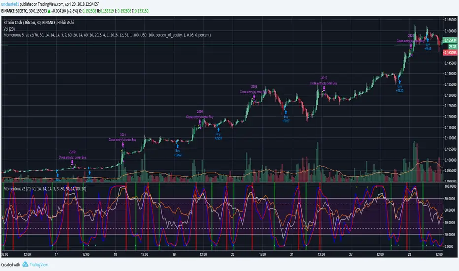 Study using RSI, StochRSI, and MFI indicators. Mix and match to find your best entries and exits using these indicator combinations. All the switches are in the Inputs page so have fun with it. Alert setups are easy. I created this primarily for crypto currencies and long positions. Perfect for users of AutoView. Backtest component by pbergden included.