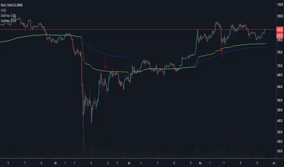 This indicator (The "Volume-Volatility weighted Average Price" or "Double Vwap") gives an alternative to the well known standard VWAP line with some special sauce.