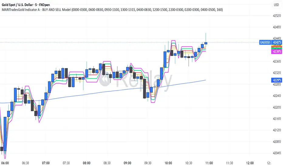The MARITrades Gold Indicator A – BOS Model is a professional charting tool designed to help traders visually identify structure breaks (BOS) and potential Fibonacci retracement zones during key market sessions on XAU/USD.