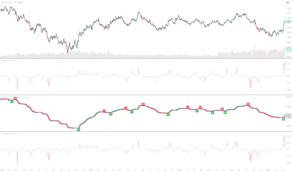 Trend Conviction is a directional confidence oscillator designed to highlight when price movement is behaving like a “clean” trend versus a choppy or contested move. It evaluates recent progression in the dominant direction and reduces the reading when price shows meaningful counter-direction pressure, helping you distinguish reliable directional conditions from unstable ones. Use it to compare trend quality over time, spot transitions from trend to range, and confirm whether momentum is supported or being resisted.