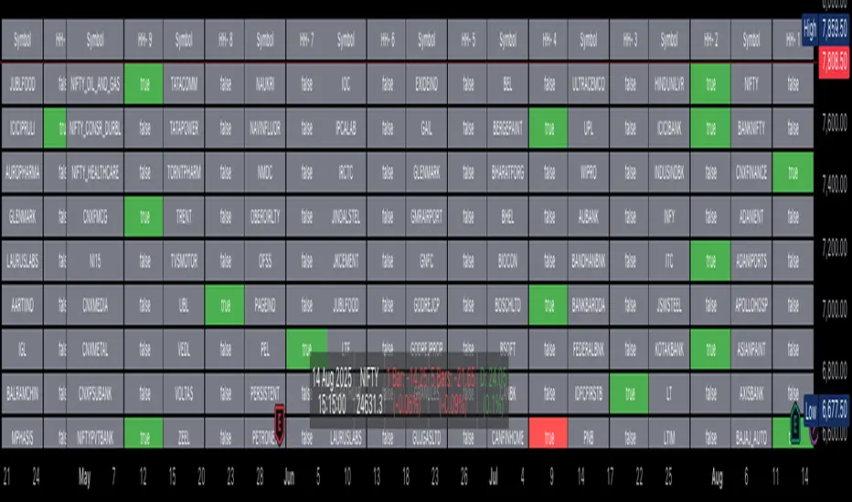 Update: A Smarter, Cleaner, Single-Row DisplayThe information panel has been completely redesigned for a cleaner and more intelligent user experience. It has a single, dynamic row that automatically adapts to your chart's timeframe.