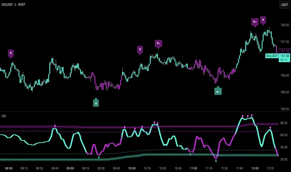 Uptrick: Quantum RSI + (𝓠𝓡𝓟) – UpdateThis version of Quantum RSI + introduces several enhancements focused on visual clarity, signal responsiveness, and user control. While maintaining its protected core logic, the update expands analytical capabilities through dynamic overlays, custom visualization modes, and a new state evaluation system.