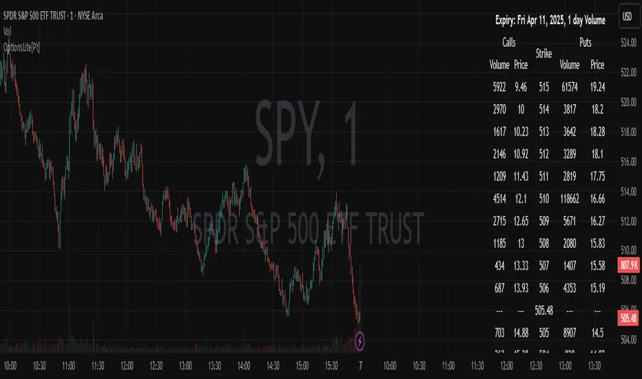 Options Chart Lite [Pt] is a simplified version of the full Options Chart+ [Pt] tool — created for traders who want a clean and easy way to visualize option volume around price without extra complexity.
