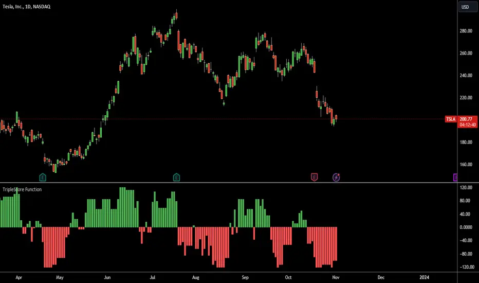 The TripleScore Indicator allows traders to assess the market's current state by providing individual scores for each component and a combined TotalScore. The TotalScore reflects the overall market sentiment, with positive scores indicating bullish conditions and negative scores suggesting bearish sentiment.