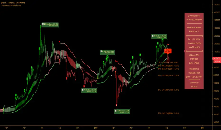 ™TradeChartist Chameleon is an exceptionally beautiful trend following indicator (visualised using Chameleon plot) based on Momentum and Volatility using User input of Chameleon Mode and Risk factor (ATR multiple) to generate Trade Opportunities.