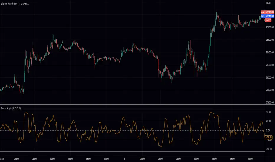 The Trend Angle Indicator is a powerful trading tool that allows traders to quickly and easily determine the strength and direction of a trend. By combining the Exponential Moving Average, ATR, and Epanechnikov kernel function, this indicator provides an accurate and easily interpretable representation of the trend angle. Whether you're an experienced trader or just starting, the Trend Angle Indicator can provide valuable insights into the market and help improve your trading decisions.