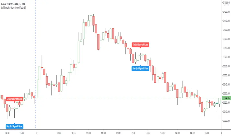 This can be perceived as modified 3 soldiers, relaxed NR4 or even extended harami candlestick pattern.