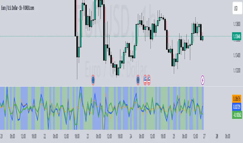Background turns bluish if EUR is stronger, greenish if GBP is stronger!