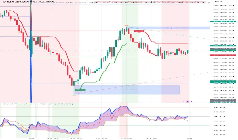 Nifty Bustar is a comprehensive trading indicator designed specifically for Nifty traders.It combines multiple powerful technical analysis tools into one intuitive interface. The indicator provides clear trend direction signals, dynamic support/resistance levels, and pattern detection to help you make informed trading decisions.