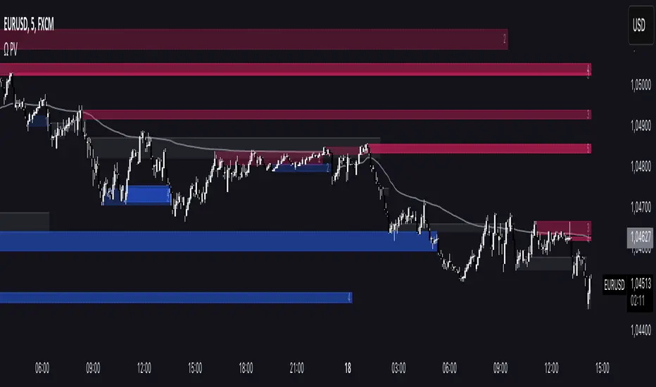 Volume clusters: display automatic volume clusters that can be used as support or resistance following the order block theory. These levels can be highlighted or extended in the settings.