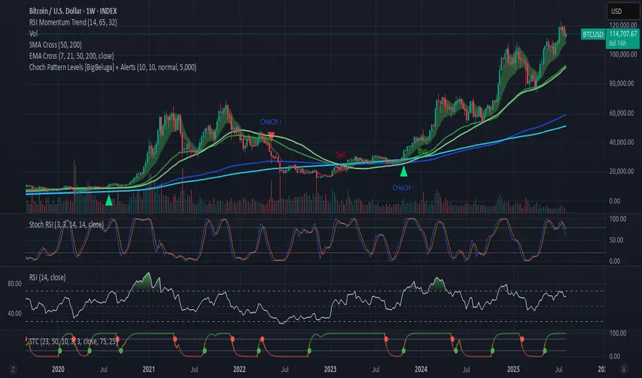 Choch Pattern Levels [BigBeluga] highlights key structural breaks that can mark the start of new trends. By combining precise break detection with volume analytics and automatic cleanup, it provides actionable insights into the true intent behind price moves — giving traders a clean edge in spotting early reversals and key reaction zones. Added support for alarms.