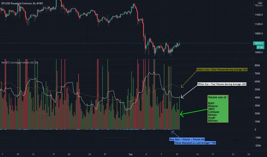 BTC Net exchange volume of top BTC exchanges with moving averages