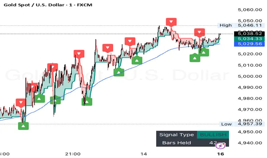 The indicator shown in your screenshot is a sophisticated trend-following system designed to filter out market noise and identify high-probability entry points.